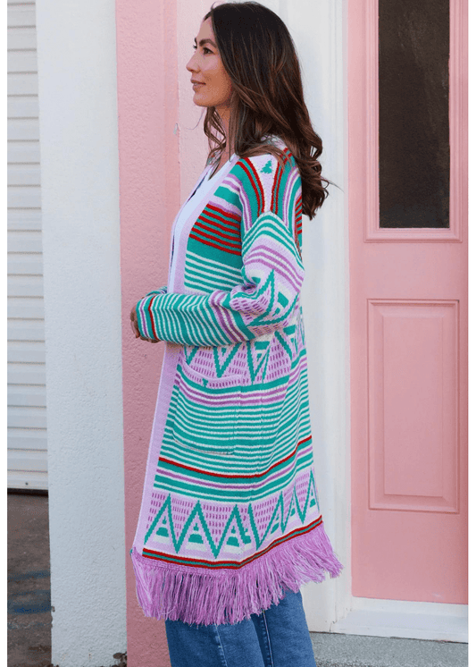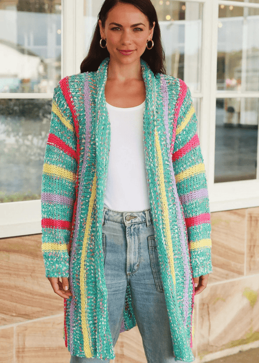 Rainbow Striped Knit Cardigan