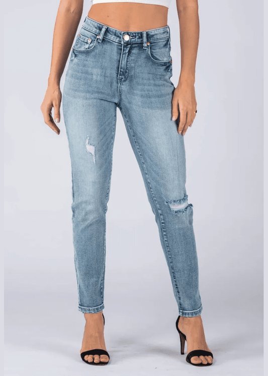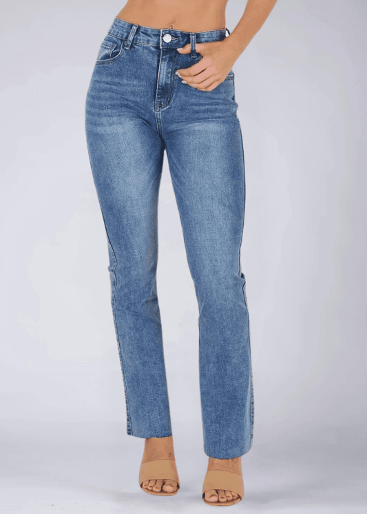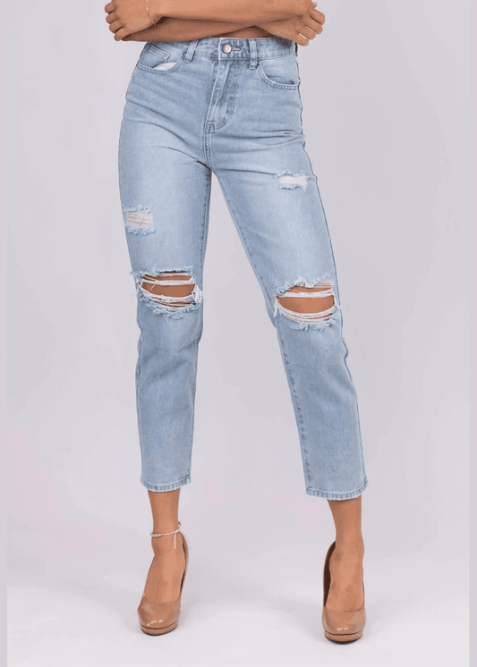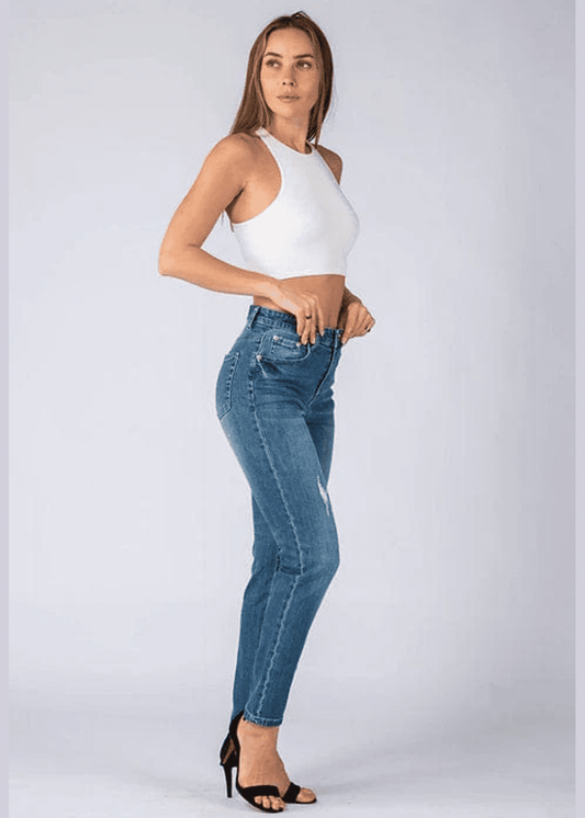 Wakee Dark Blue Distressed Straight Leg Jeans